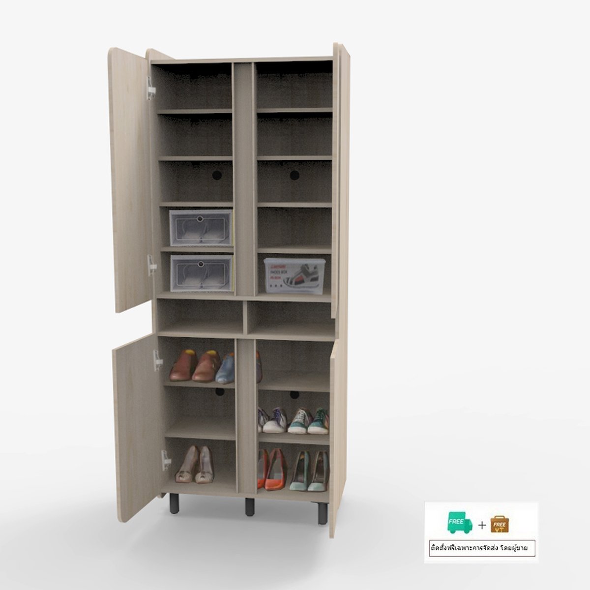 Inhome Furniture ตูู้เก็บรองเท้า 4 บานเปิด ทรงสูง W80xD40xH200 รุ่น SB-8016
