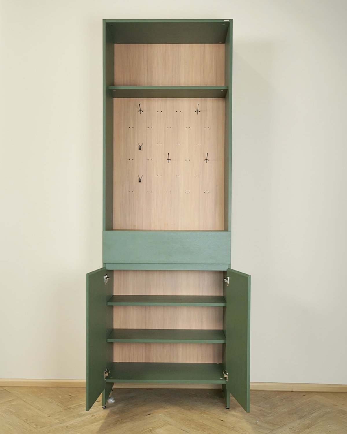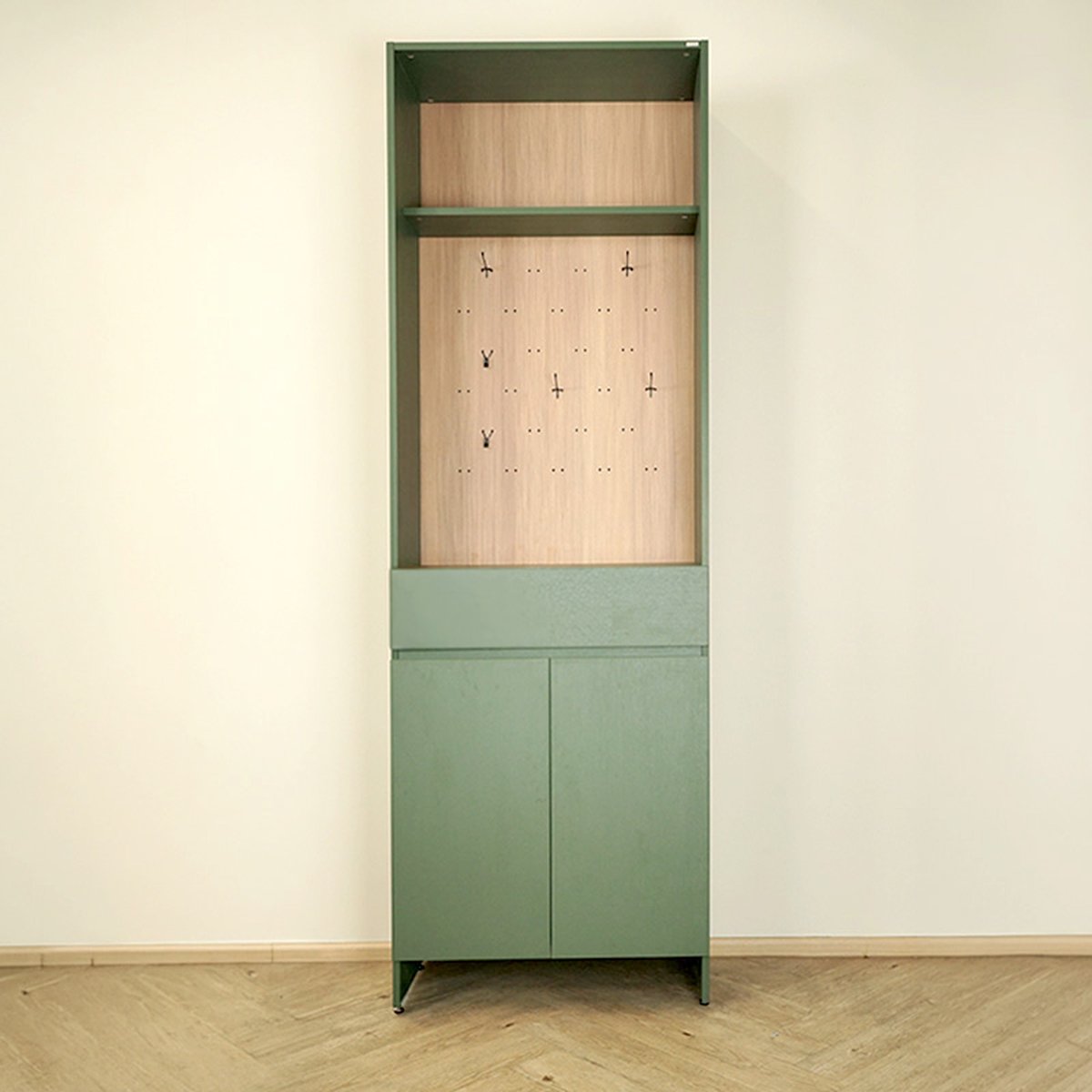 - มีชั้นวางของ pegboard สำหรับแขวนของ ตู้เก็บของ