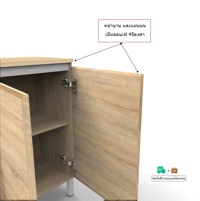 – สี S-WH ลายไม้โซลิดโอ๊ค คานช่องมือจับใต้แผ่นบนสีขาว และขาเหล็กมุมสีขาว 4 ขา สูง 12.5 ซม.ขนาด 1.1/4 นิ้ว ขาไม้กลาง 3 ขา แผ่นบน, แผ่นข้าง, หน้าบานเปิด ปิดผิวเมลามี ส่วนอื่นๆปิดผิว Foil