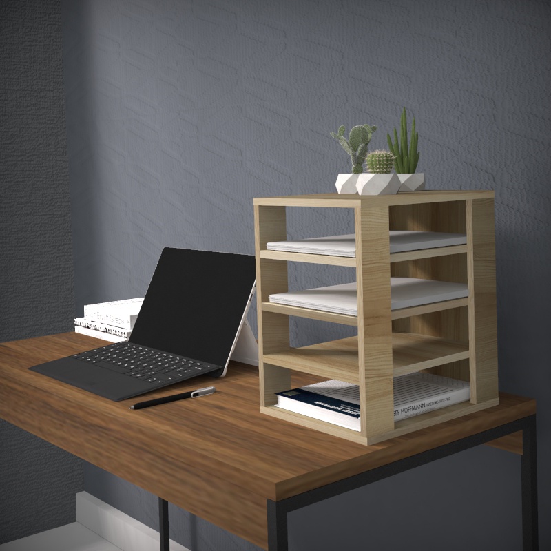 ชั้นวางเอกสาร (ขนาด A4) 4 ช่อง เหมาะสำหรับวางบนโต๊ะทำงาน เพื่อจัดเก็บเอกสารให้เป็นระเบียบเรียบร้อย สามารถวางของชั้นบนสุดได้ ทำให้มีพื้นที่บนโต๊ะทำงานเพิ่มขึ้น ผลิตจากไม้ปาร์ติเกิ้ลบอร์ด หนา 12 มม.