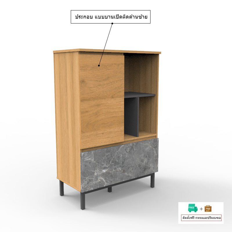 – มี 1 บานเปิด + 1 ลิ้นชักขนาดใหญ่สีลายหินอ่อนเทานอร์ดิก และชั้นวางของสามารถประกอบให้บานทึบอยู่ด้านซ้ายหรือขวา แล้วแต่ความเหมาะสมกับพื้นที่