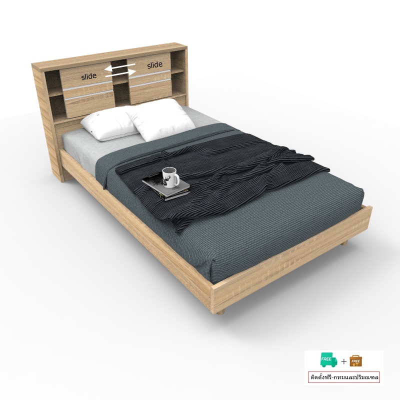 – มีช่องเก็บของที่หัวเตียงเป้นบานเลื่อนซ้าย-ขวา